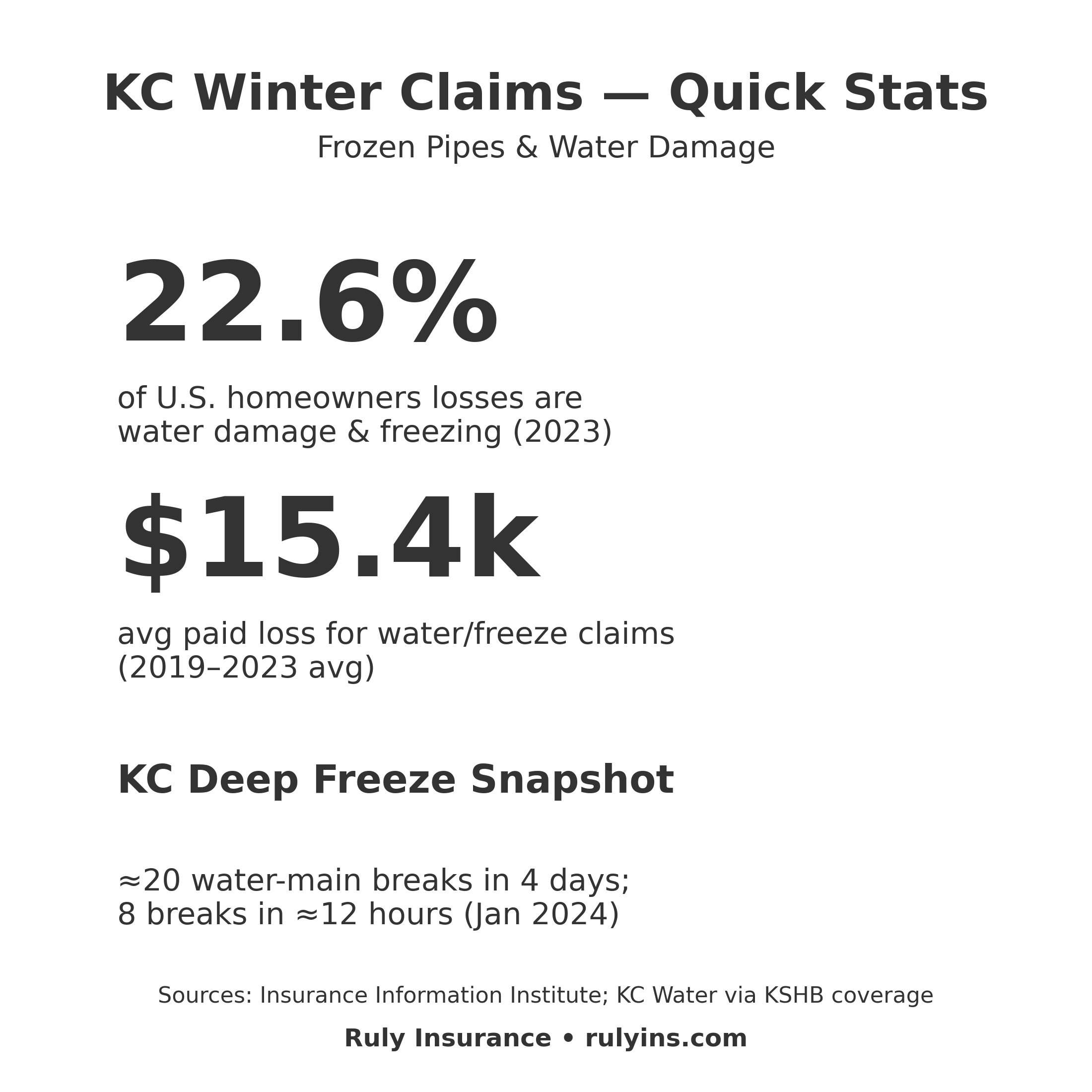 KC’s mix of older homes, seasonal construction differences, and occasional sharp deep freezes means we often see local spikes in frozen-pipe claims after a multi-day cold snap.